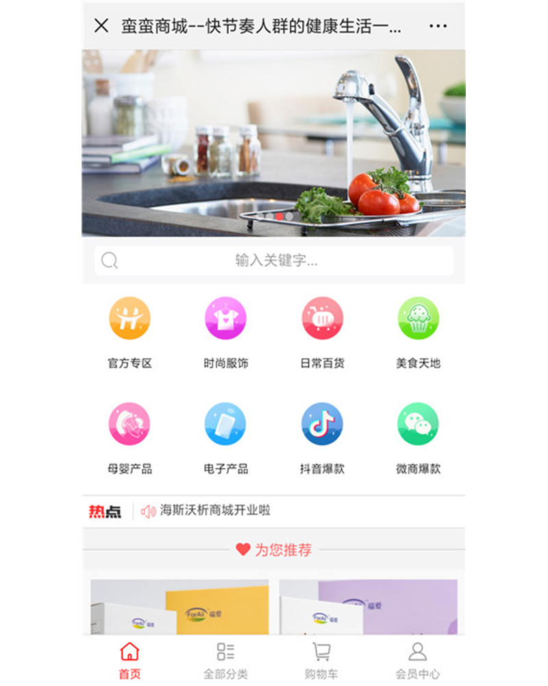 該商城是全方位購物一體的微信商城,開發有全部分類、購物車、會員中心等等